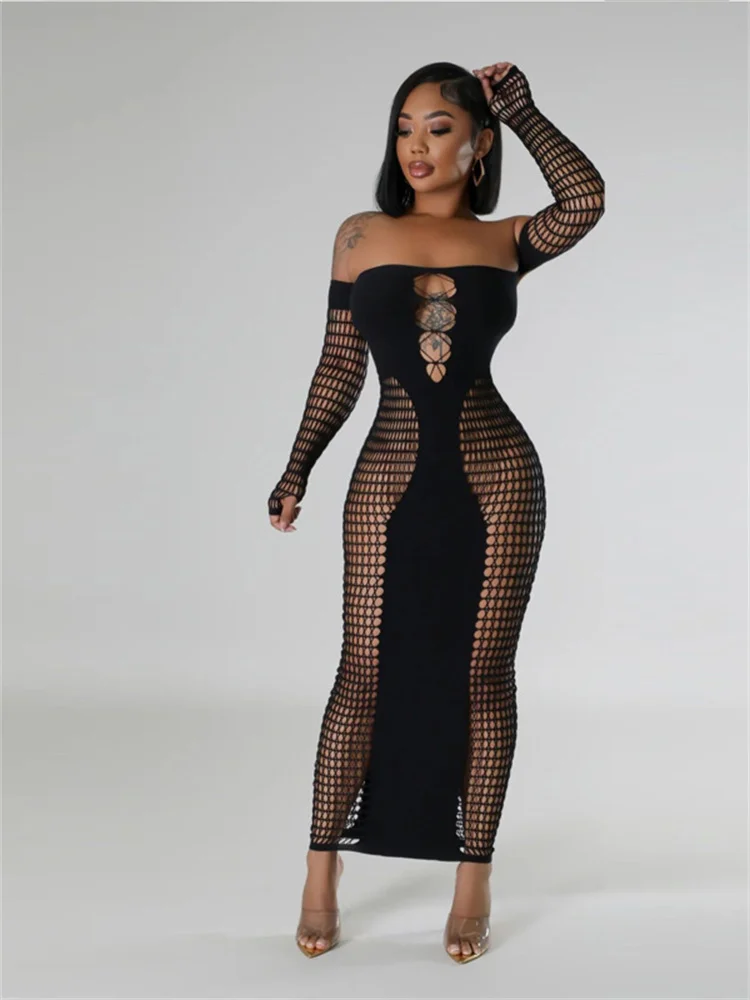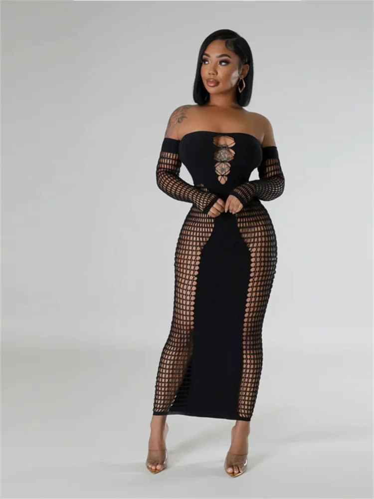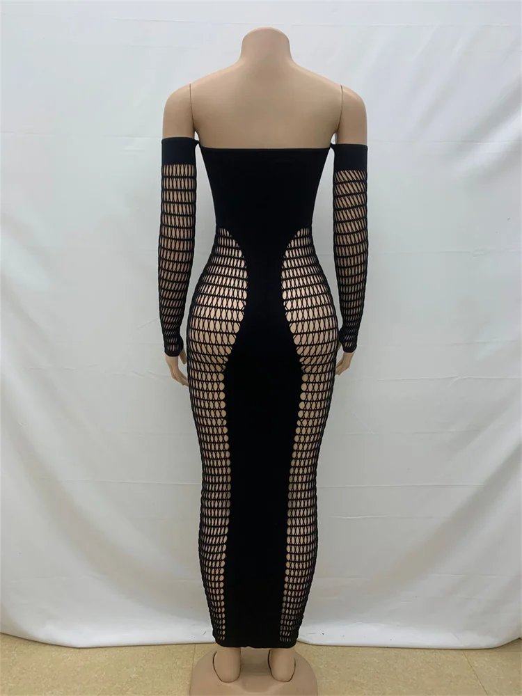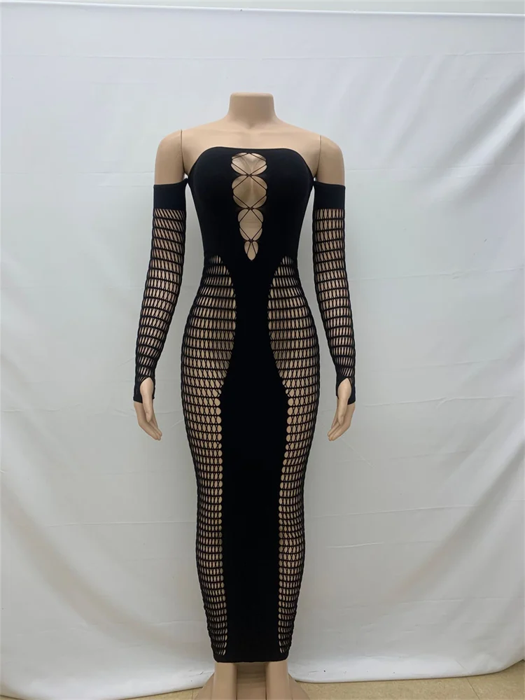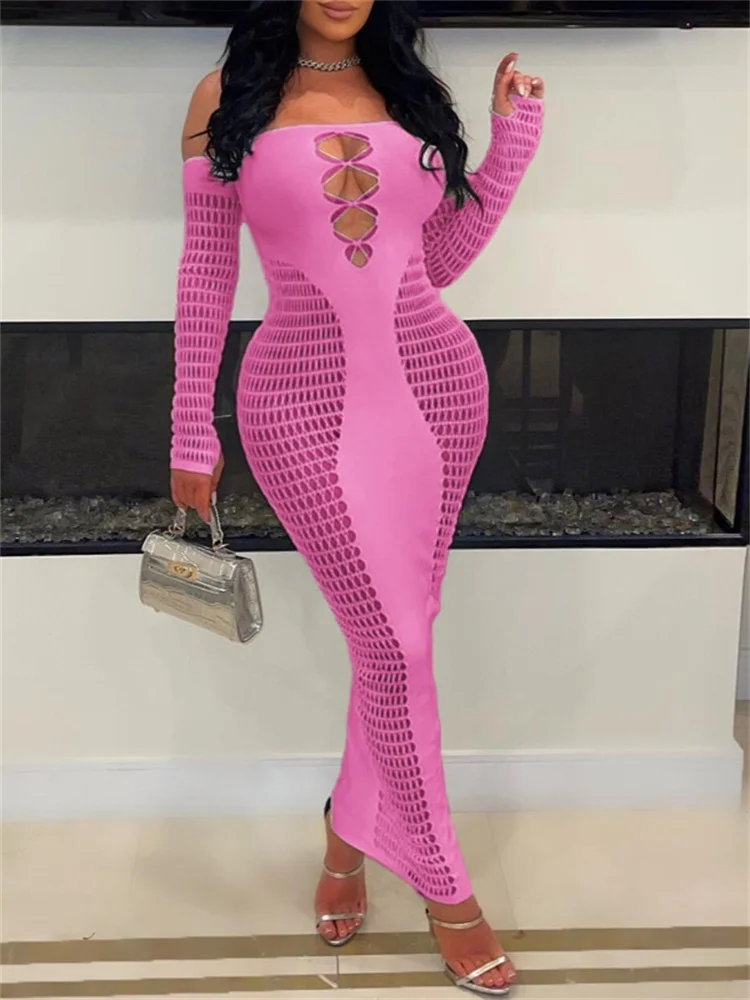 Autumn Long Sleeve Knitted Backless Bodycon Strapless Dress Women Maxi Dresses Sexy Pink Bodycon Clubwear Party Vestidos dress