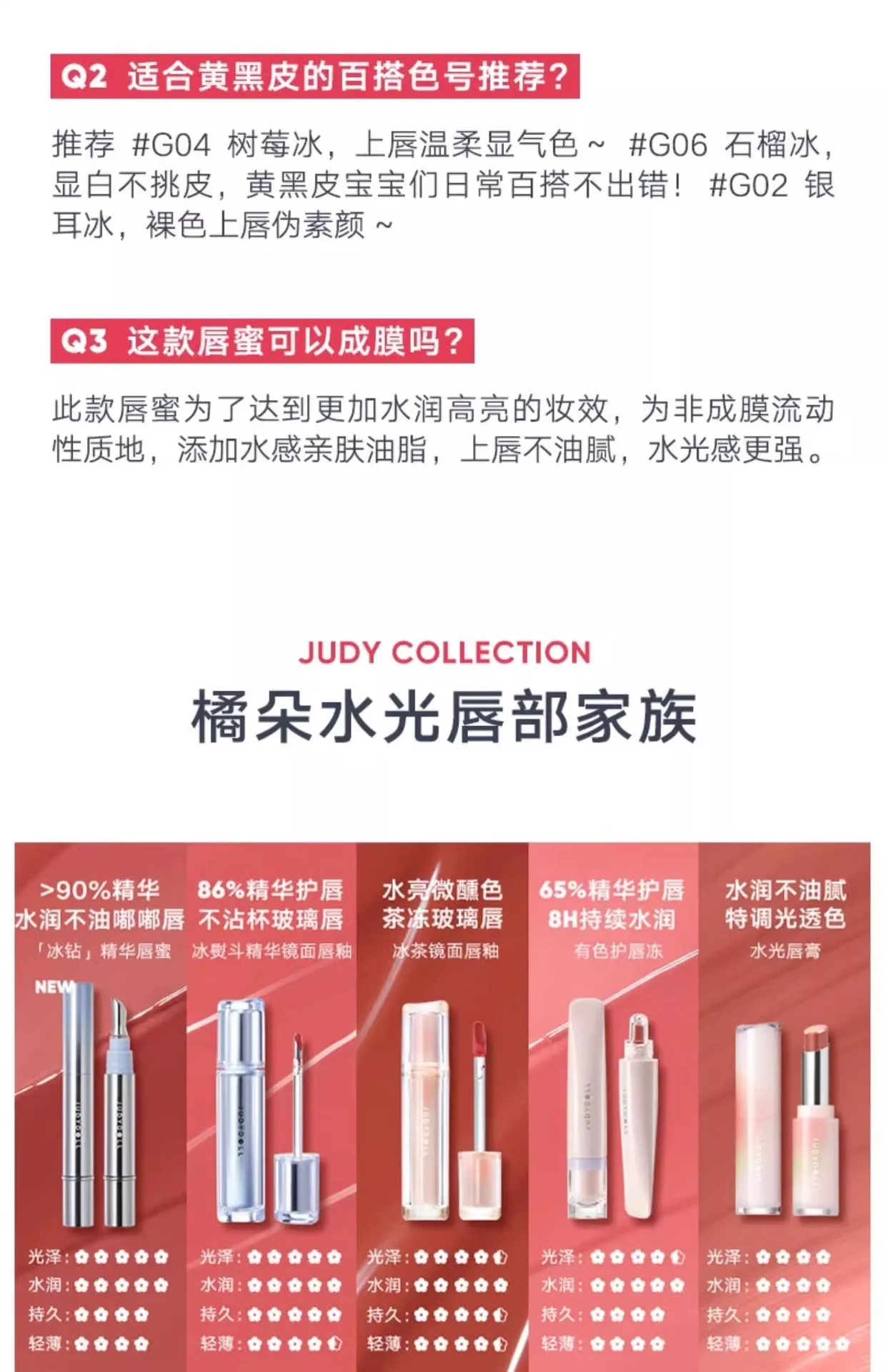 Judydoll Ice Diamond Essence Lip Tint Mirror Water Light Lip Gloss Fading Lip Lines Lipstick Moisturizer Lip Plumping Makeup