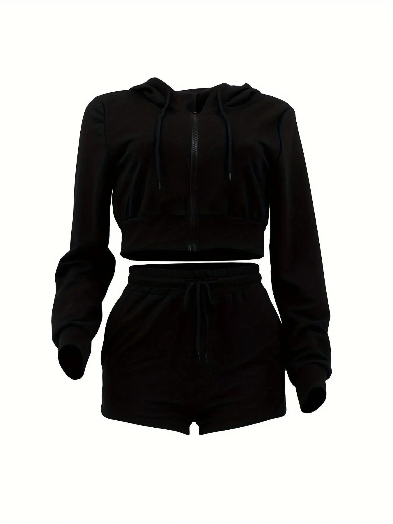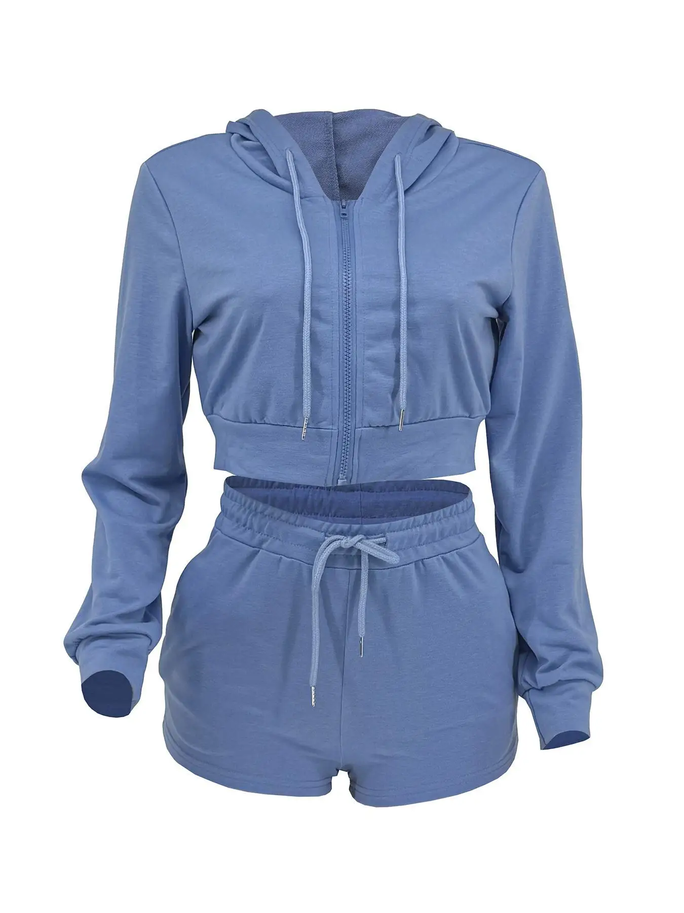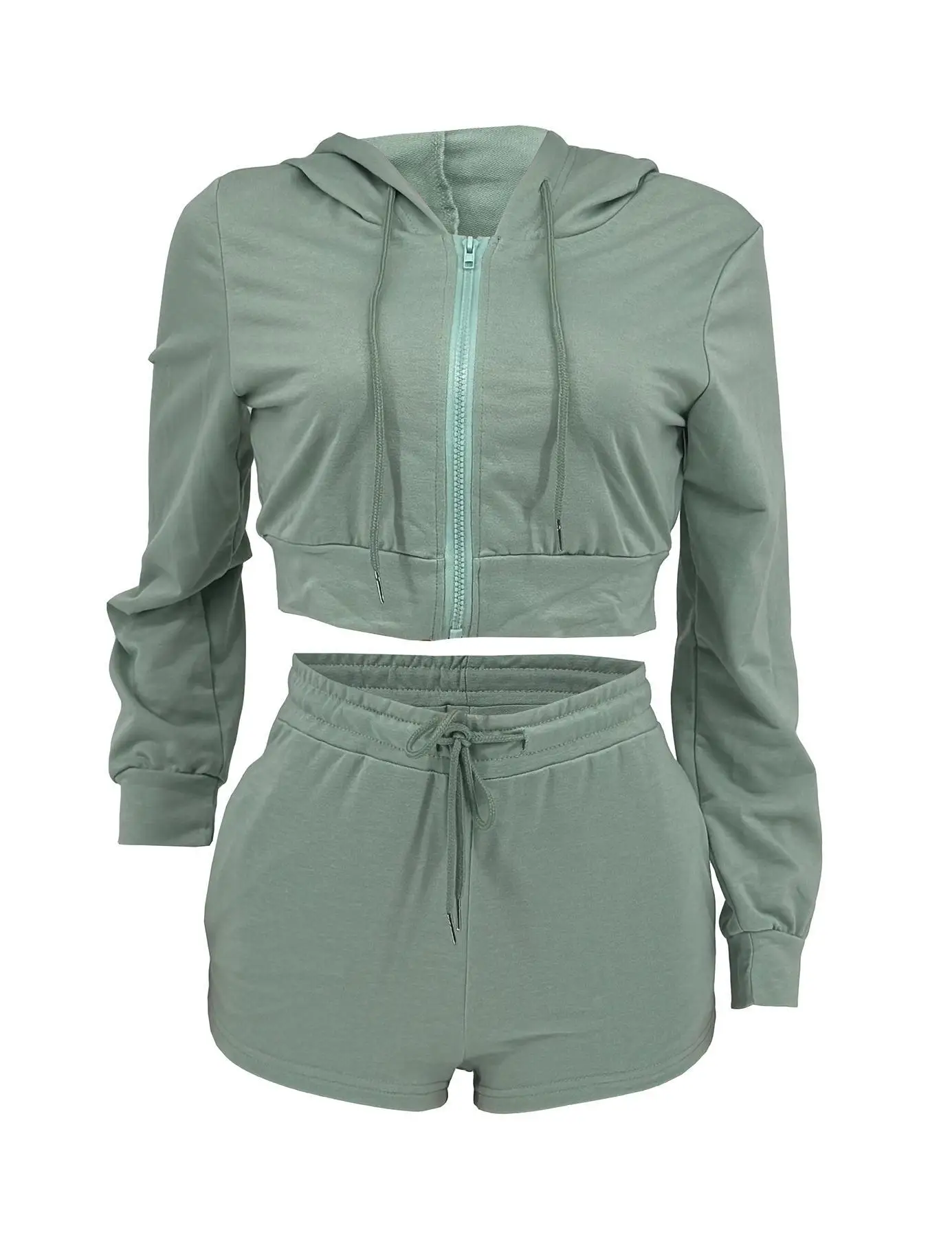 2025 New Casual Woman 2 Piece Set Outfit Solid Long Sleeve Zip Hoodies Top and Shorts Suits Female Streetwear Clothing