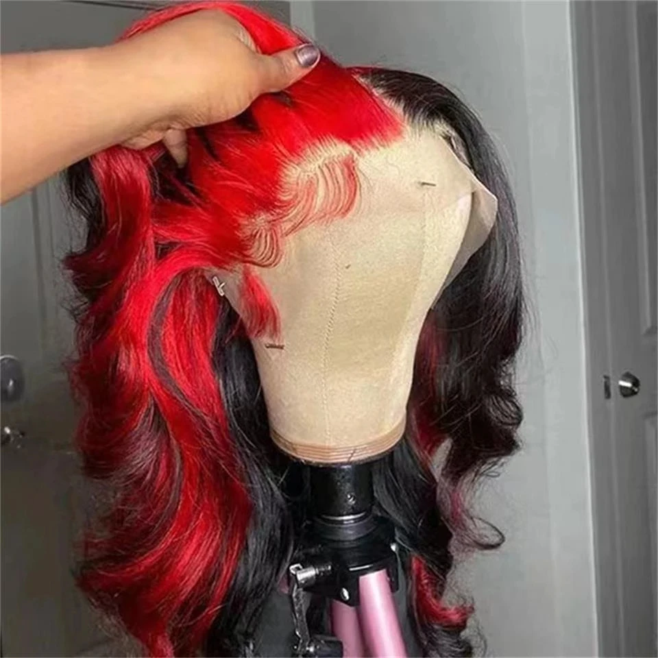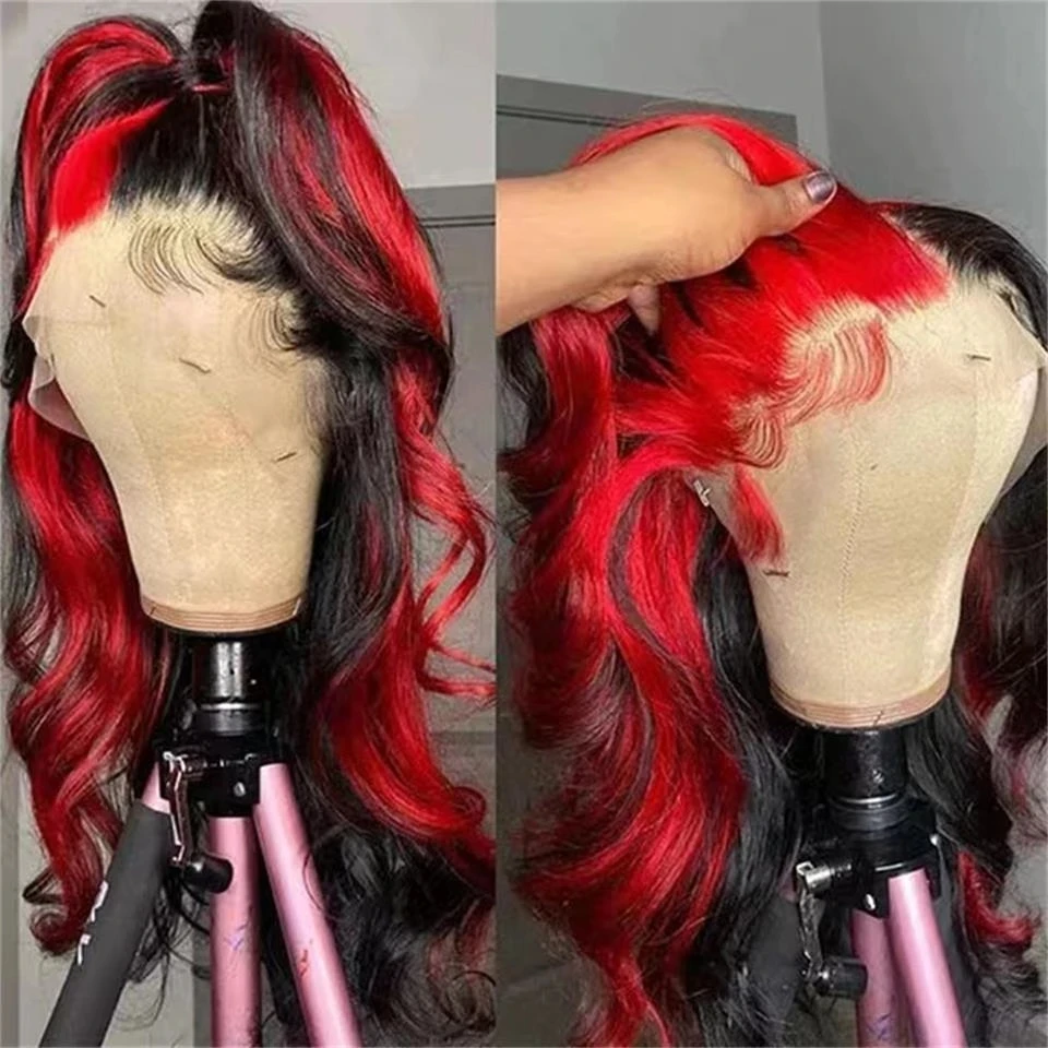 13x6 Highlight Red With Black Lace Frontal Closure Wig 100%Human Hair Ombre Color Brazilian Body Wave Lace Front Wig Preplucked for Women