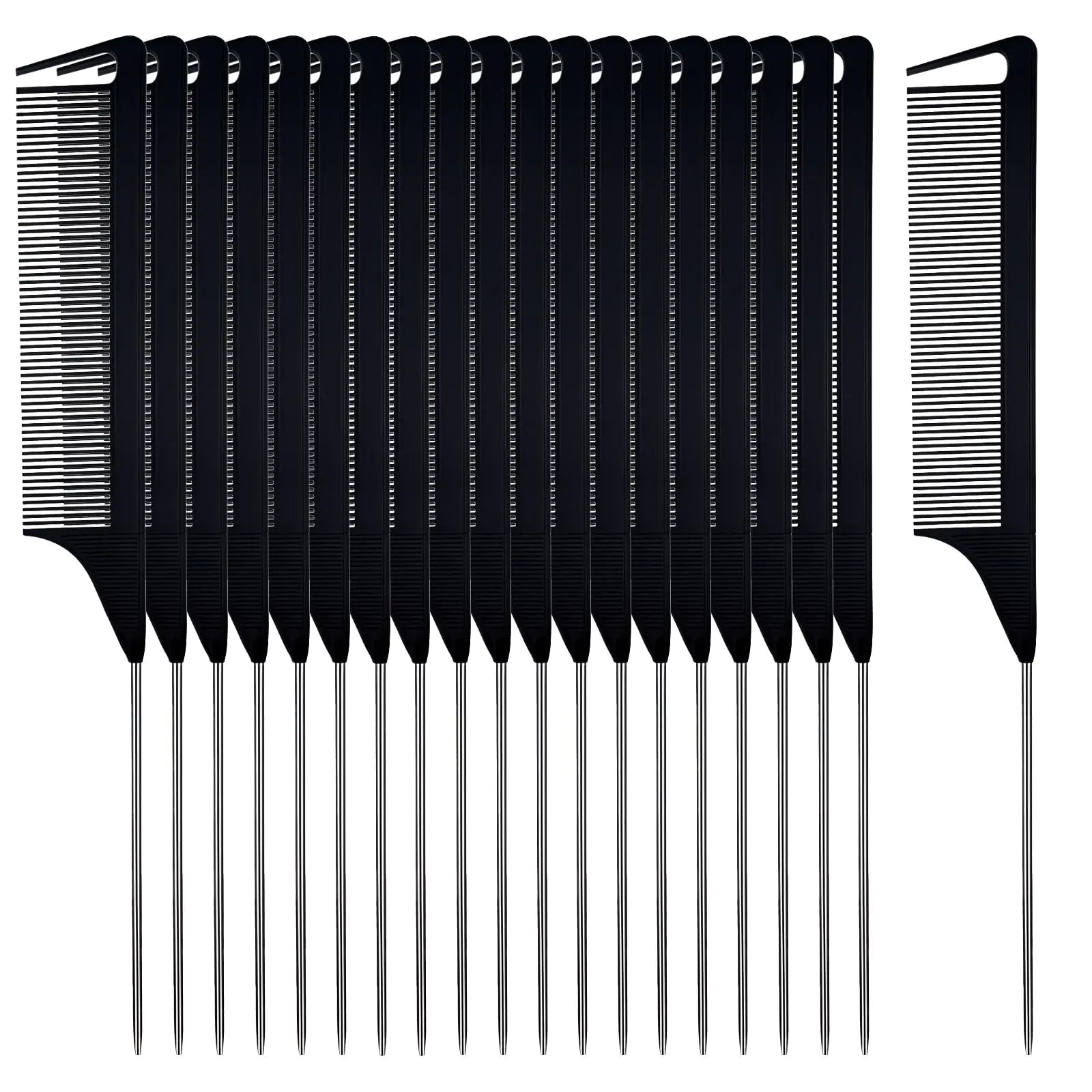 40Pcs Metal Rat Tail Comb 8.85 Inch Comb with Parting Tip Stainless Steel Pintail Comb Carbon Fiber Anti Static Heat Resistant Comb for Curly Braiding Styling Hair (Black)