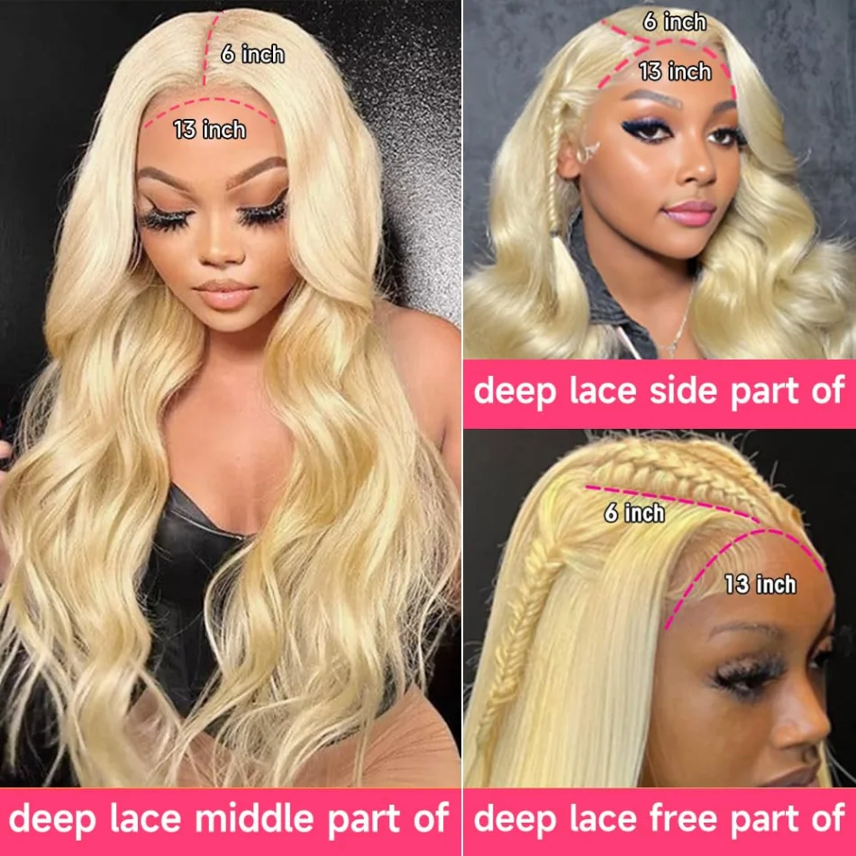 【613 Blonde Lace Front Wig Human Hair Details】: 250% Density More Full And Thick, Make Your Hairstyle Beautiful, 16-38 Inches Different Length Available, 13X6 Lace Frontal Wigs Gives You More Parting Space And Wearing More Comfortable, Can Make Middle Part, Side Part,High Ponytail & Bun.