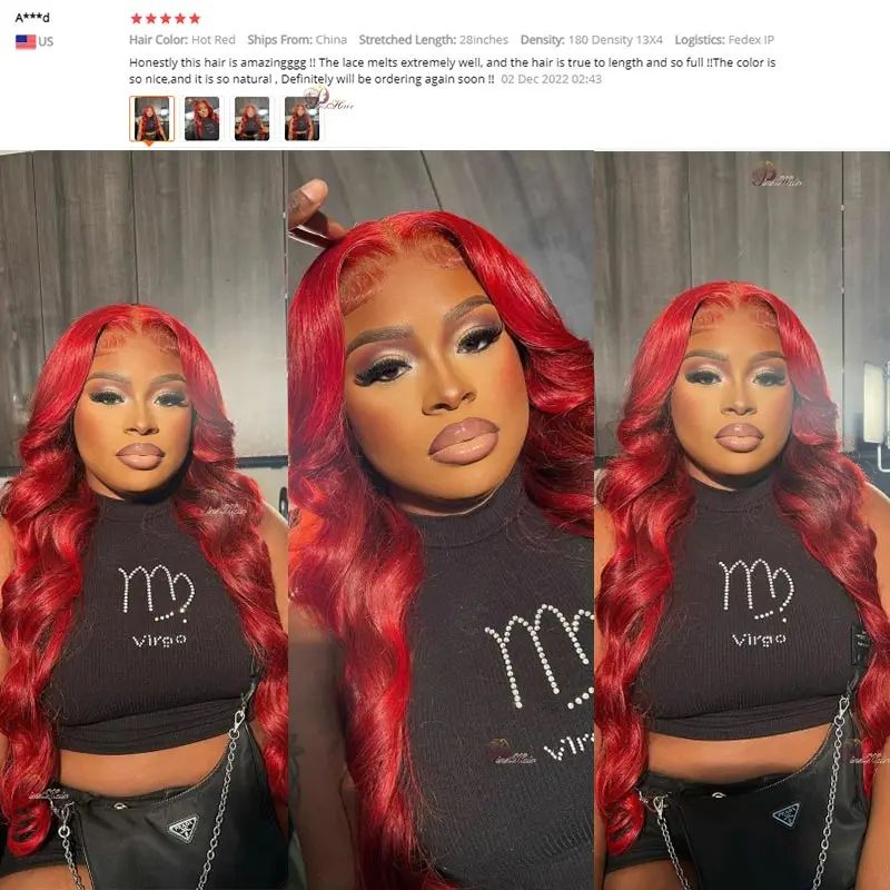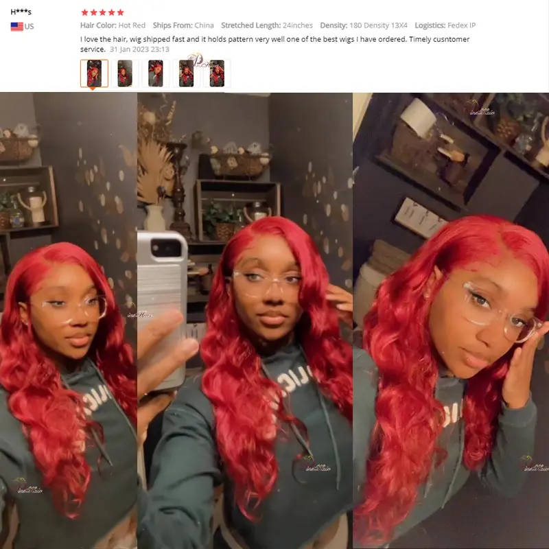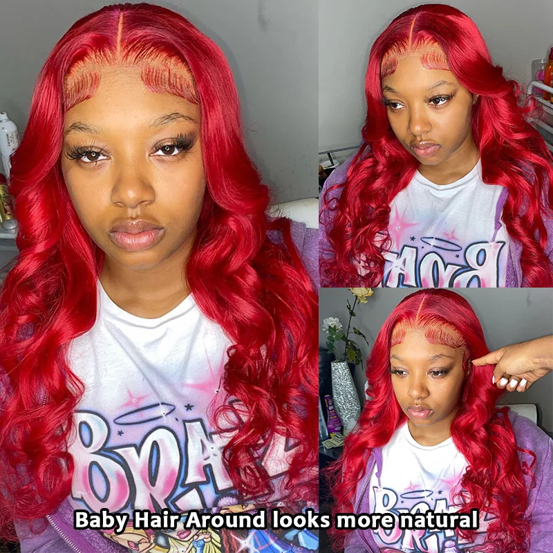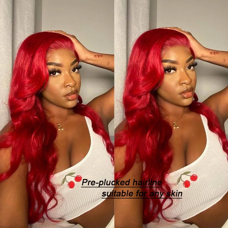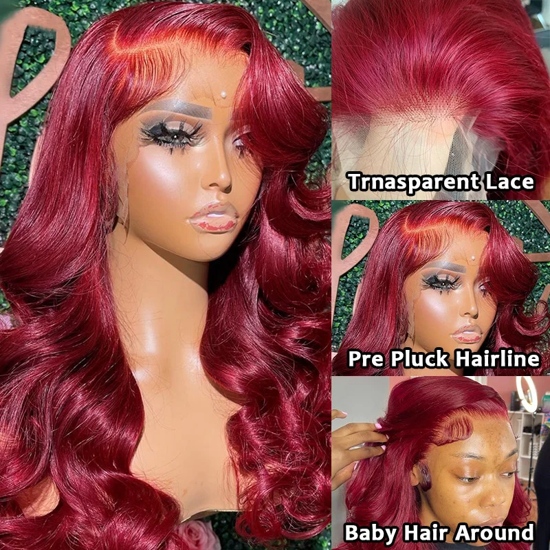 Red Body Wave Lace Front Human Hair Wigs Burgundy 99J Colored 13X6 Lace Frontal Wig Remy Human Hair Pre Plucked For Women180%