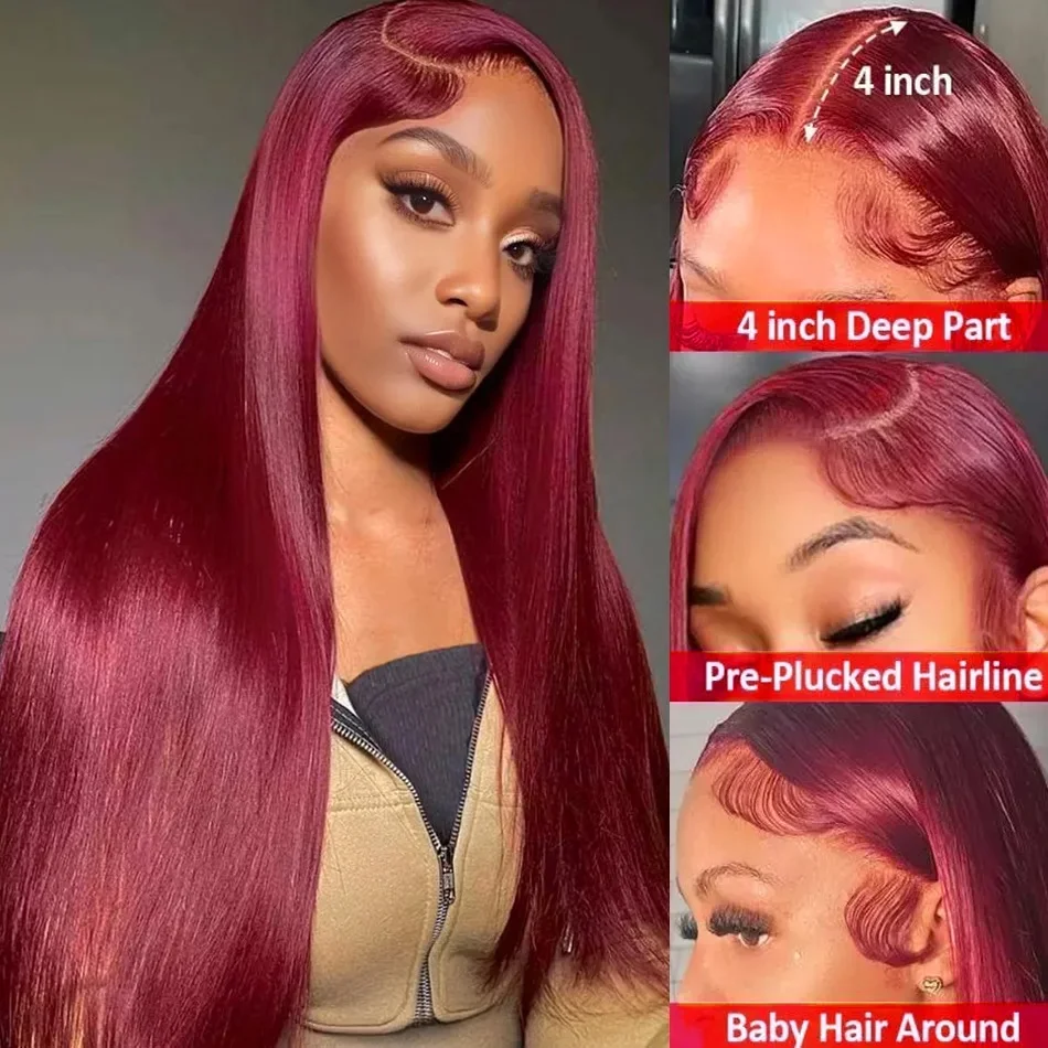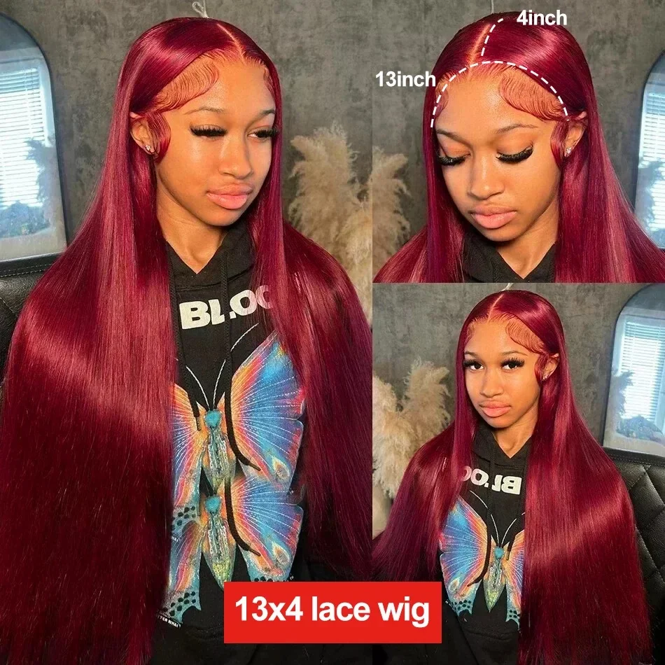 99j Burgundy 13x6 Hd Lace Frontal Human Hair Wig 30 40 Inch Straight Lace Front Wigs Brazilan Wig Natural Hairline Pre Plucked